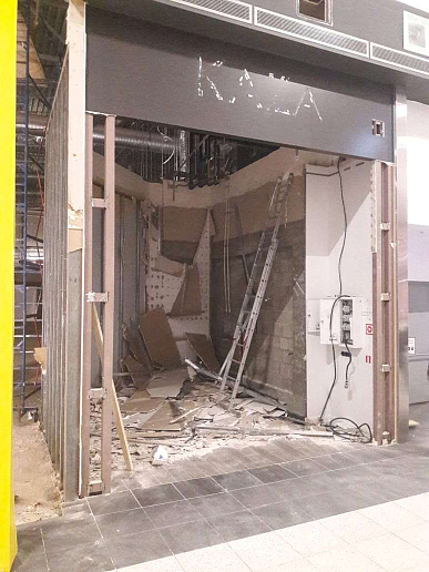 Первый этап включал в себя ознакомление с планом демонтажа, подготовку помещения и оборудования, получение разрешения на определенные виды работ от администрации торгово-развлекательного центра (ТРЦ), определение сроков.