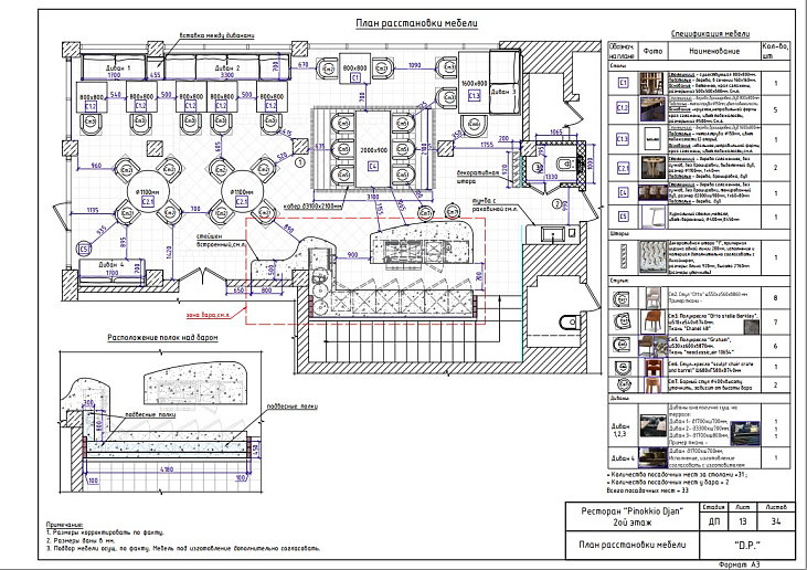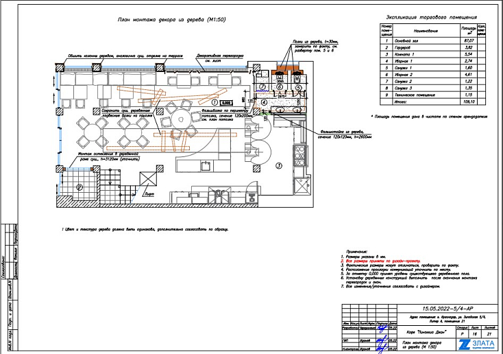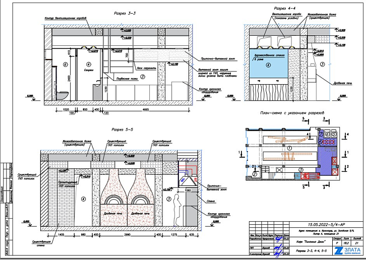 Разработать проектную документацию, включающую разделы архитектурно-строительной части (АР), инженерных систем электрооборудования и освещения (ЭОМ), водоснабжения и водоотведения (ВК), а также разработать проект систем вентиляции и кондиционирования (ОВиК) для ресторана Пиноккио Djan.