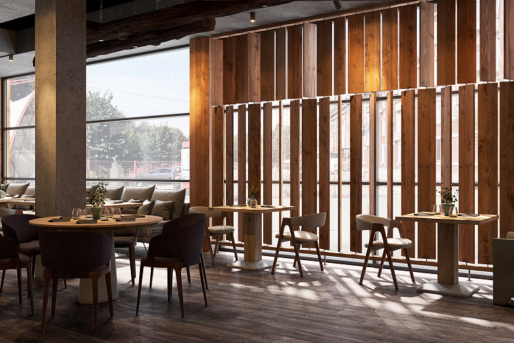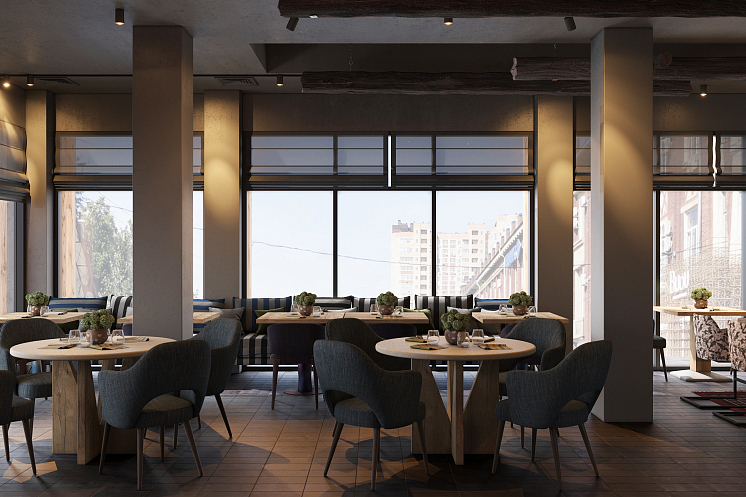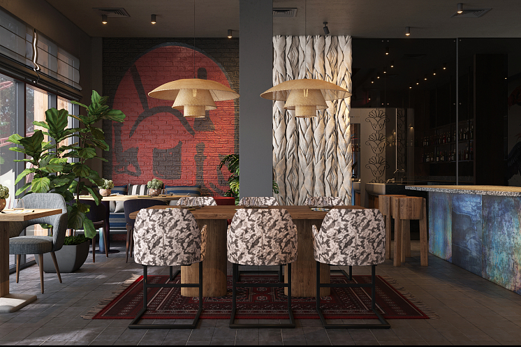 Специалисты нашей компании создали уникальный дизайн ресторана, принимая во внимание требования заказчика и характеристики помещения. Мы предложили оригинальное размещение зон отдыха, барной стойки и кухни, чтобы обеспечить эффективное движение посетителей и сотрудников.