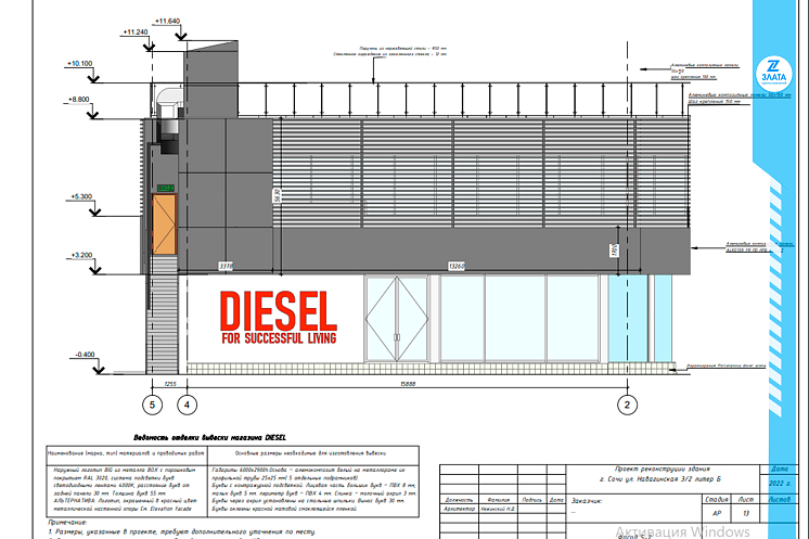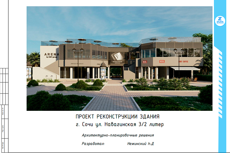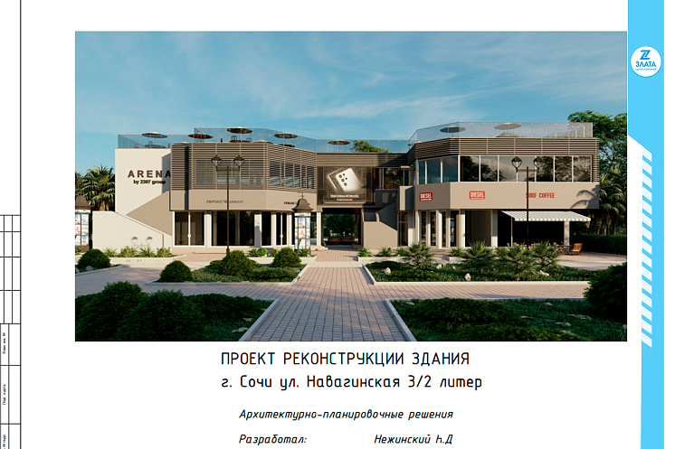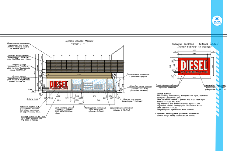 Специалисты ГК "ЗЛАТА" разработали проект реконструкции здания магазина, были спроектированы стеклянные ограждения, логотип и вывески.