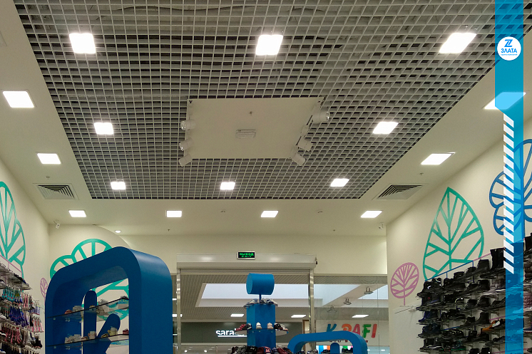 Специалисты ГК "ЗЛАТА" в максимально короткий срок (3 недели) провели реконструкцию магазина: восстановили отделку стен и пола, установили новую потолочную систему и зеркальную входную конструкцию.