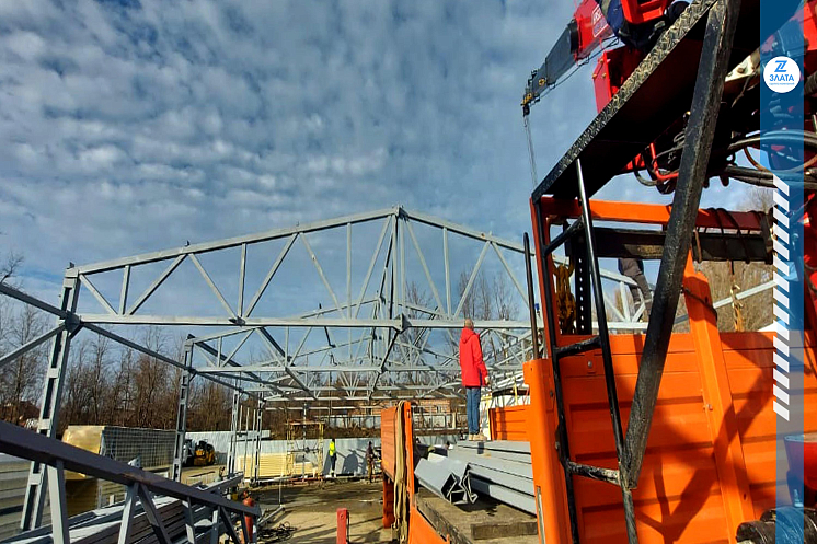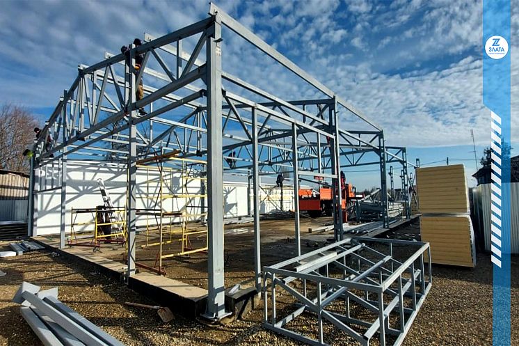 Провести строительно-монтажные работы: устройство фундамента, плиты пола, изготовление и монтаж М/конструкций, монтаж ограждающих конструкций и заполнение проемов. Параллельно работы с сетями ВК, ЭОМ, Газ.