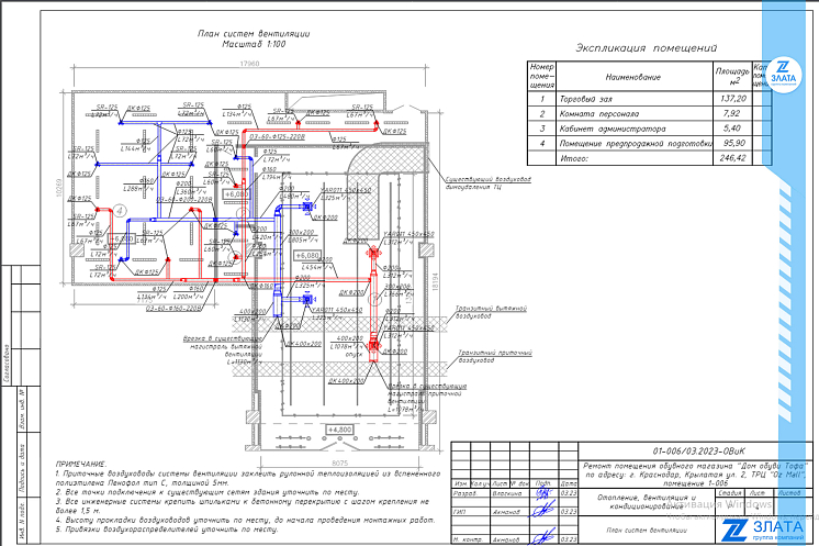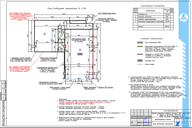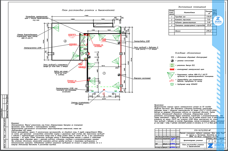 Составлен обмер помещения, разработаны рабочие чертежи разделов АР, ЭОМ и ОВиК.