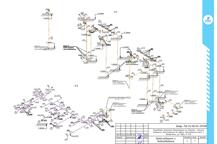 При разработке проекта системы водоснабжения и канализации (ВК), наши специалисты разработали детальные схемы и чертежи в соответствии со всеми необходимыми требованиями и нормами. В проекте были учтены следующие факторы: расположение канализационных труб, точек забора воды и бытовых очистных сооружений; расположение насосных станция для подачи воды, а также расчет потребления и водоотведения.