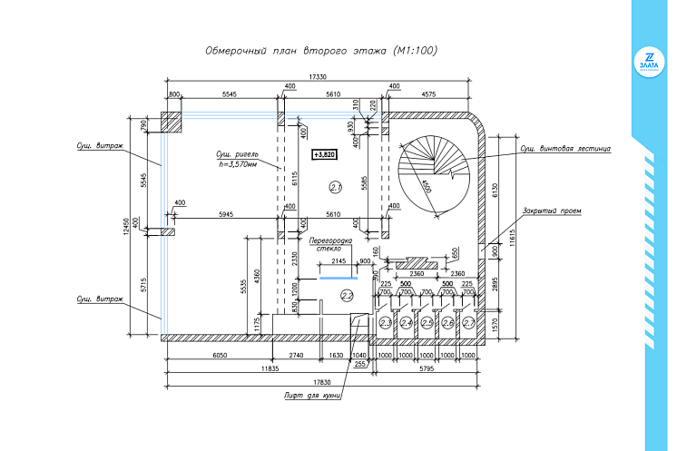 Специалисты ГК “ЗЛАТА” подготовили подробный и точный обмер, который станет основой для успешной реализации проекта в будущем.