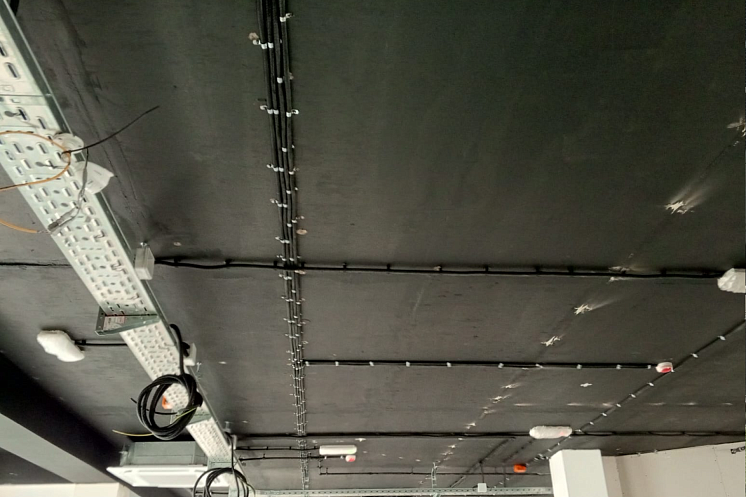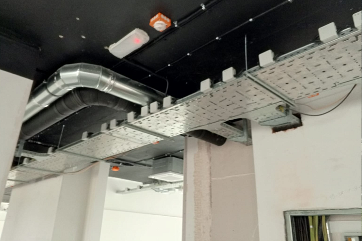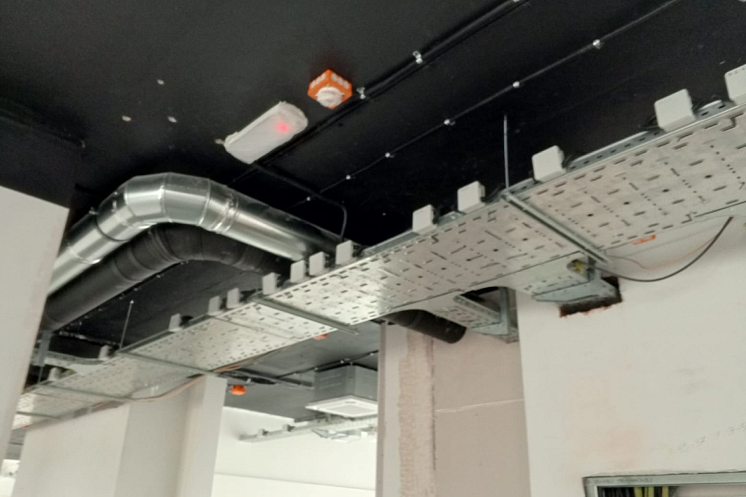 • Произведены работы по прокладке кабельных трасс, установке электрощитов, розеток, выключателей и систем освещения.