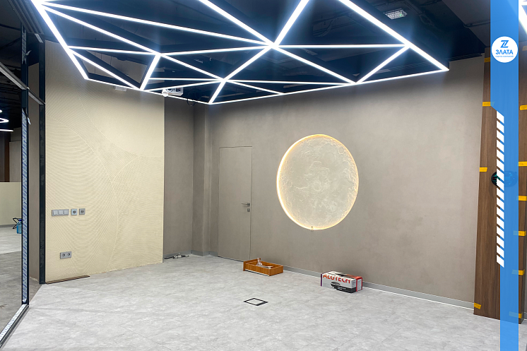 • В интерьере шоурума «АЛЮТЕХ» использовались современные материалы, соответствующие стилю и концепции компании.