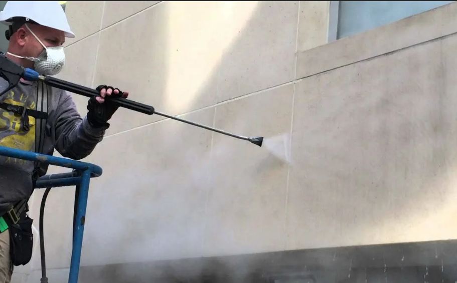 Мытье фасада должны выполнять специалисты с допуском к высотным работам. В распоряжении рабочих должны быть специальные инструменты, ведь фасад не отмыть ручным способом. Уход за фасадом — это и герметизация швов. Открытые швы пропускают в помещение холодный воздух и влагу. Особое внимание стоит уделять металлическим фасадам, так как металл имеет свойство покрываться ржавчиной.