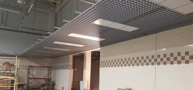 - Самый оптимальный тип потолка — подвесной. За подвесными плитами легко и безопасно спрятать коммуникации (провода, воздуховоды). Также подвесной потолок подходит для установки самых разных светильников и систем кондиционирования воздуха.