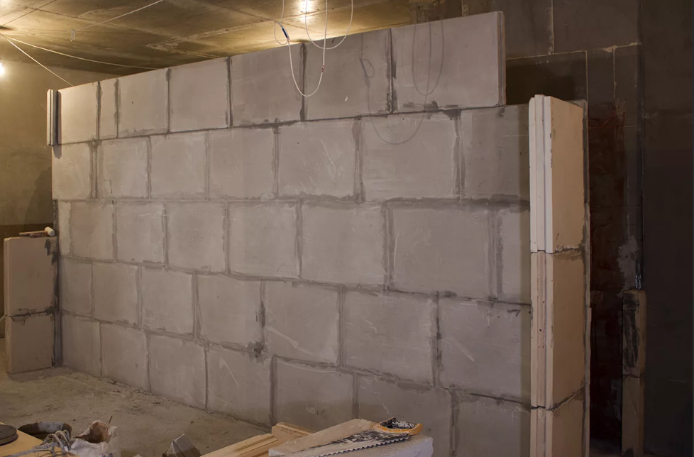 Перегородки из пеноблоков и газоблоков. Газоблоки — это материал с пористой поверхностью, которая подходит для различных видов отделки. Перегородки из газоблоков легко штукатурить, у них высокое качество поверхности. Благодаря свойствам материала газоблоки обладают отличной паропроницаемостью и повышают влагопоглощение. Обратные свойства имеют перегородки из пеноблоков: материал с закрытыми ячейками не пропускает пар. Для возведения стен и перегородок из этих двух материалов выбирайте блоки толщиной от 75 мм до 100 мм. Блоки толщиной менее 60 мм обладают плохой шумоизоляцией и не выдерживают нагрузку вроде полок и мониторов ТВ. Плюсы перегородок из пено- и газоблоков: