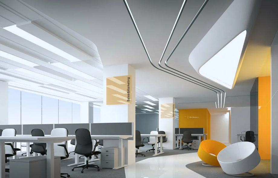 - Качеством материалов для отделки офиса. Визуализация будущего интерьера. Визуализация нужна не только для согласования дизайна с заказчиком, но и для правильного монтажа всех компонентов интерьера и отделочных работ. Дизайн-проект офиса содержит необходимые чертежи, схемы, планы и, конечно, 3D визуализацию. Объемная картинку будущего интерьера дает представление даже о глубине освещения в рабочих зонах. Качественная визуализация возможна только при создании дизайн-проекта помещения.